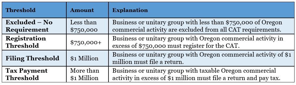 Taxpayers whose taxable commercial activity does not exceed $1 million are generally exempt from the Oregon CAT