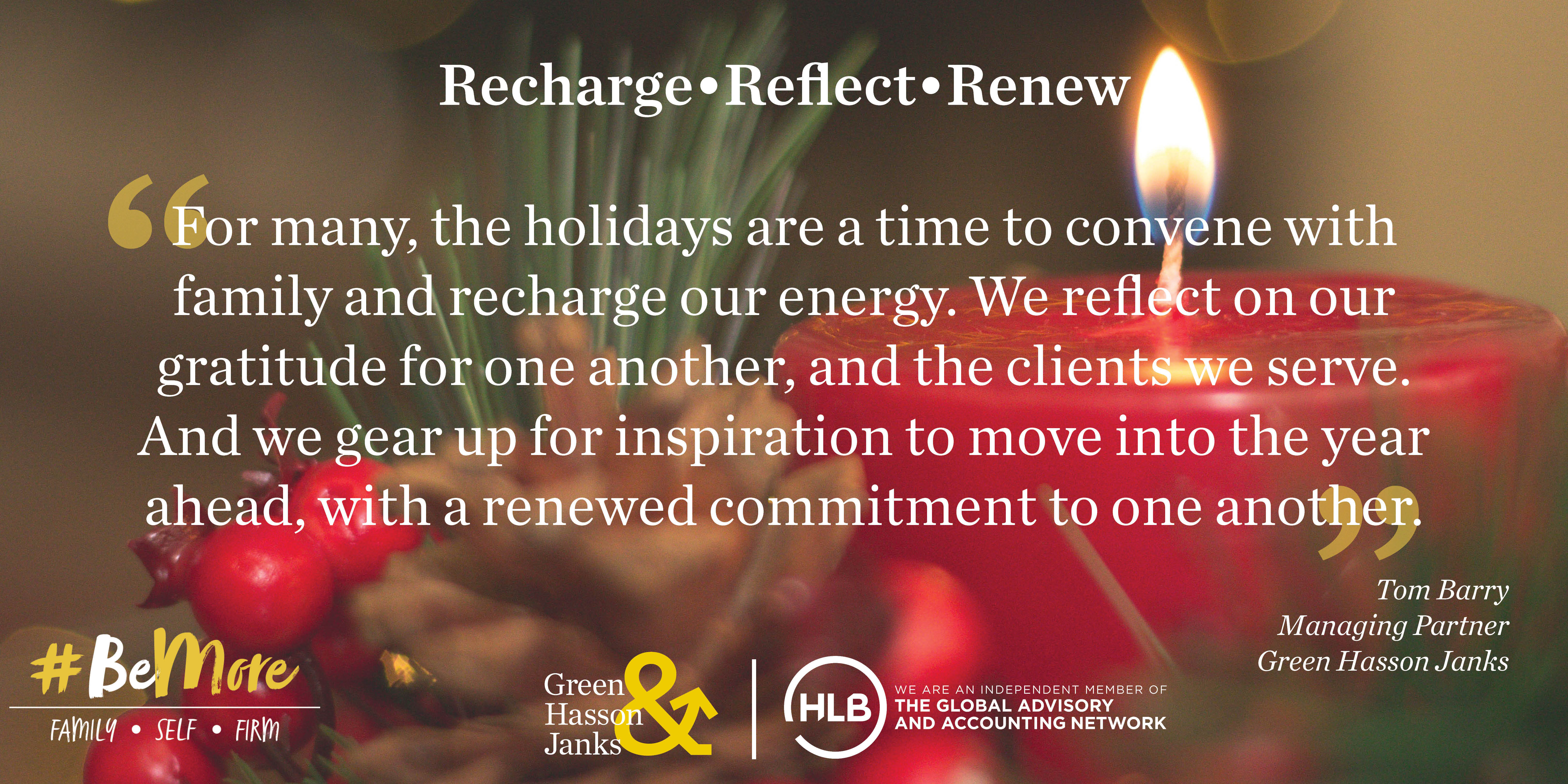 With this in mind, GHJ has provided our people with a week off between Christmas and New Year’s Day for the last five years. Family is one of the core tenets of the GHJ #BeMore philosophy, and we hope this holiday break will give our GHJ family time for the “life” part of work/life balance.