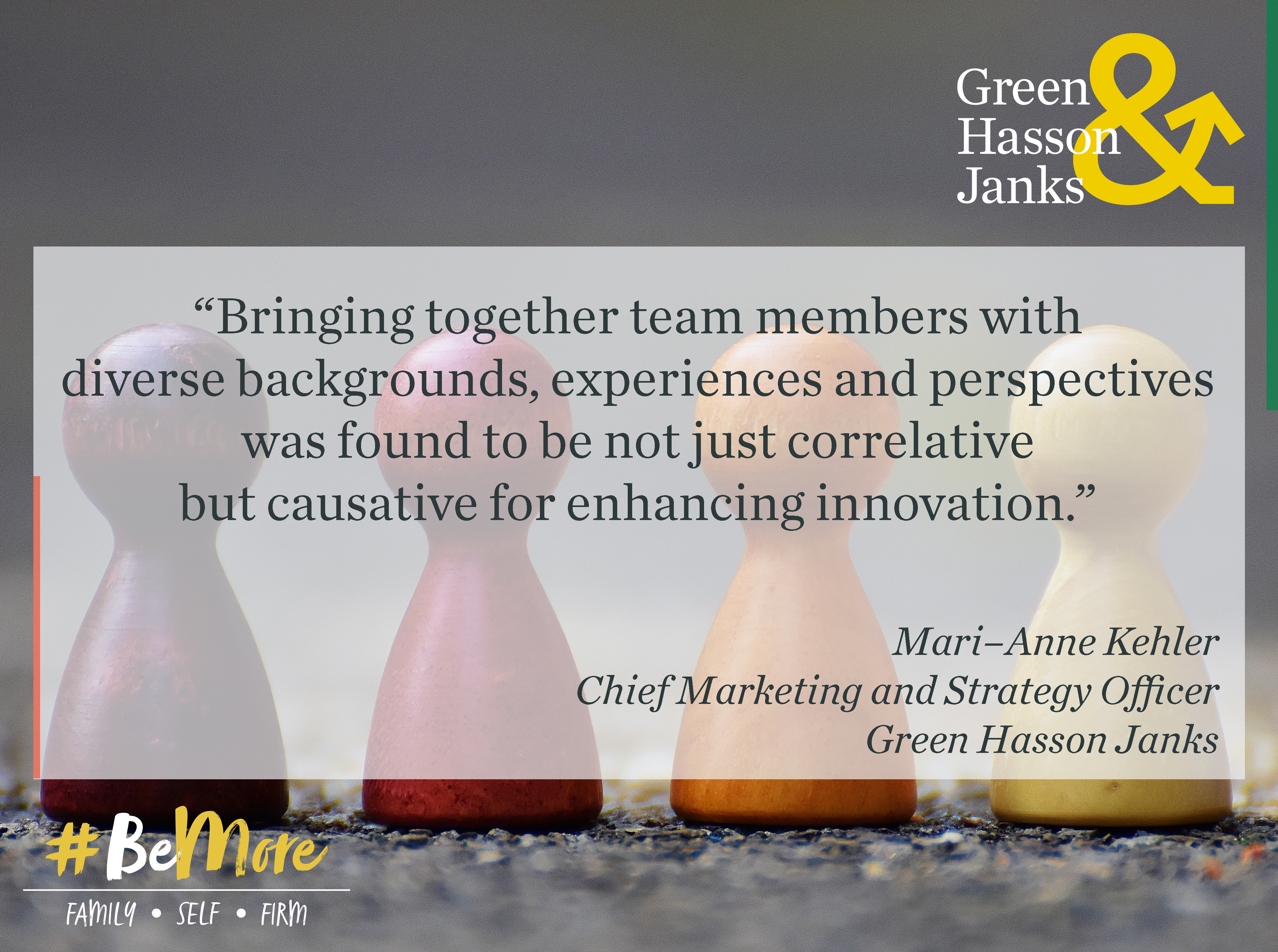 Bringing together team members with diverse backgrounds, experiences and perspectives was found to be not just correlative but causative for enhancing innovation. Meaning, the diversity of thought itself was a driver of the increased innovative outcomes. GHJ has a practice of selecting teams that represent a cross section of diversity of thought to increase successful and innovative outcomes. A study published this year from NC State’s Poole College of Management concluded workforce diversity in fact enhances firm value. The paper’s title asks “Do Pro-Diversity Policies Improve Corporate Innovation?” “We wanted to know whether companies with policies encouraging the promotion and retention of a diverse workforce – in terms of gender, race and sexual orientation – also perform better at developing innovative products and services,” said Richard Warr, co-author of the paper. “The short answer is that they do.”