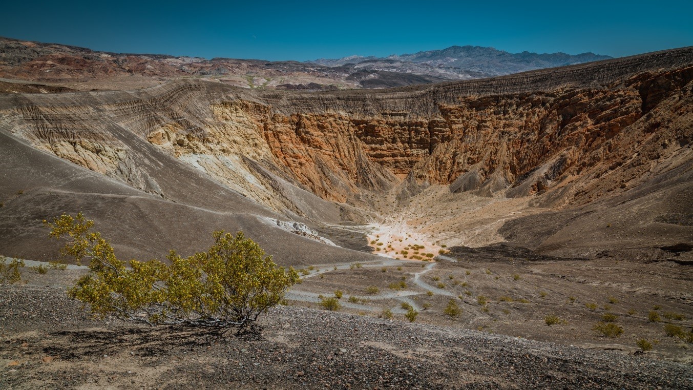 The same as accountants, photographers also look at details. Once a famous landscape viewpoint is established, everyone tends to take the same photo as long as they have the same camera. But good accountants would view things in different angles with attention and patience. Below is a photo I took at Ubehebe Crater, another famous viewpoint in Death Valley National Park. Most tourists would take a similar photo like this one (after thinking, “Wow: this is such a big hole!”).