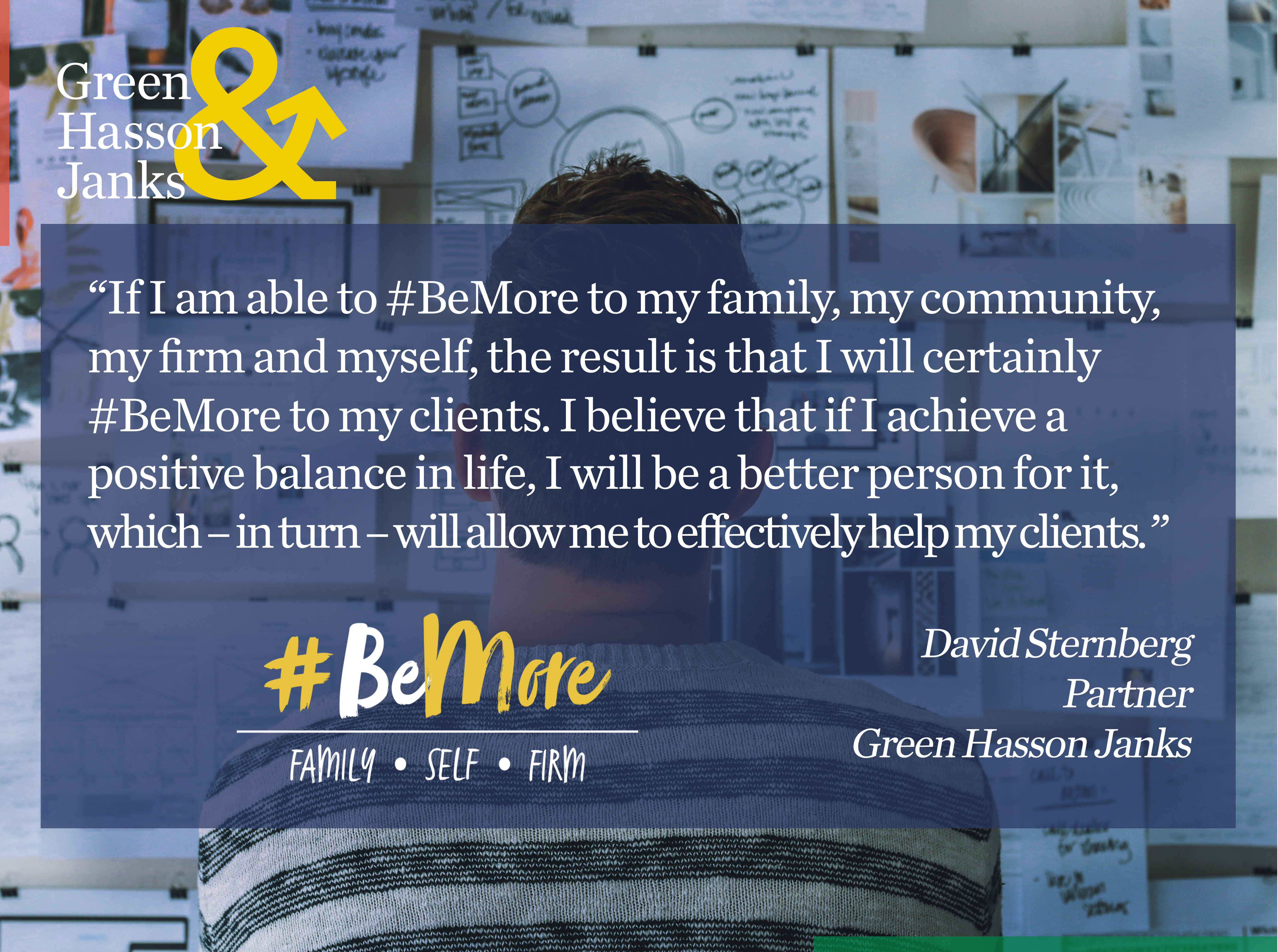 I became a Partner at the age of 34, and I could not have done so without the support from my wife and my then three-month bundle of joy, Sophie. Sophie did a great job of being my 5 a.m. alarm clock during this past Busy Season. GHJ has also been a great support with flexible work schedules. I am able to tailor days based on client needs as well as family and personal commitments. GHJ’s flex work environment allows for the nimbleness needed in my world of constant change. Technology allows me to stay connected in real-time; it also allows me to keep my commitments to my family and firm. If I am able to #BeMore to my family, my community, my firm and myself, the result is that I will certainly #BeMore to my clients. I believe that if I achieve a positive balance in life, I will be a better person for it, which – in turn – will allow me to effectively help my clients. GHJ Managing Partner Tom Barry lives and breathes our #BeMore philosophy and has shaped our firm culture. For me, #BeMore equals “positive balance.” If I am more to my family, myself, my clients, my firm and my community, this translates into happiness, fulfilment and the positive energy needed for Busy Season.