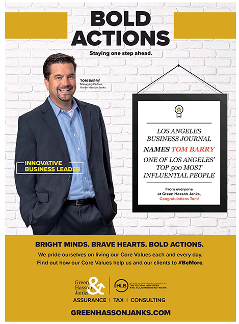 Due to his leadership both at GHJ and the community at large, Tom was recognized in 2018 and 2019 by the Los Angeles Business Journal as one of LA’s 500 most influential people in business.