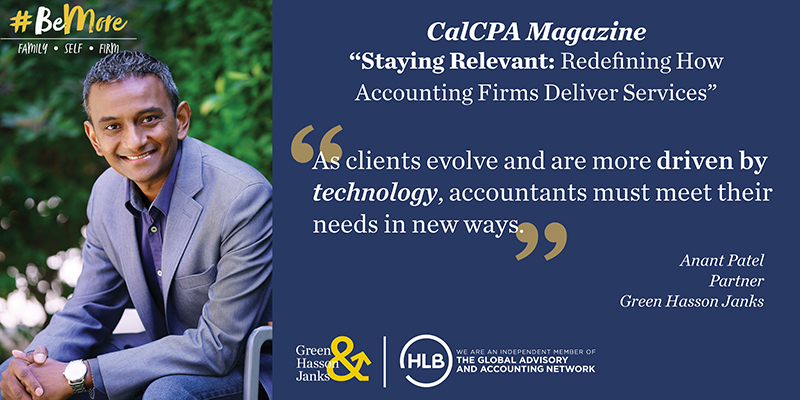 As the market swiftly changes, accounting firms have the opportunity to take a serious assessment of how well they are meeting their clients’ needs – and how they are planning to meet future needs. GHJ Partner Anant Patel discusses GHJ’s approach to redefining how accounting firms deliver services in the May issue of CalCPA Magazine.