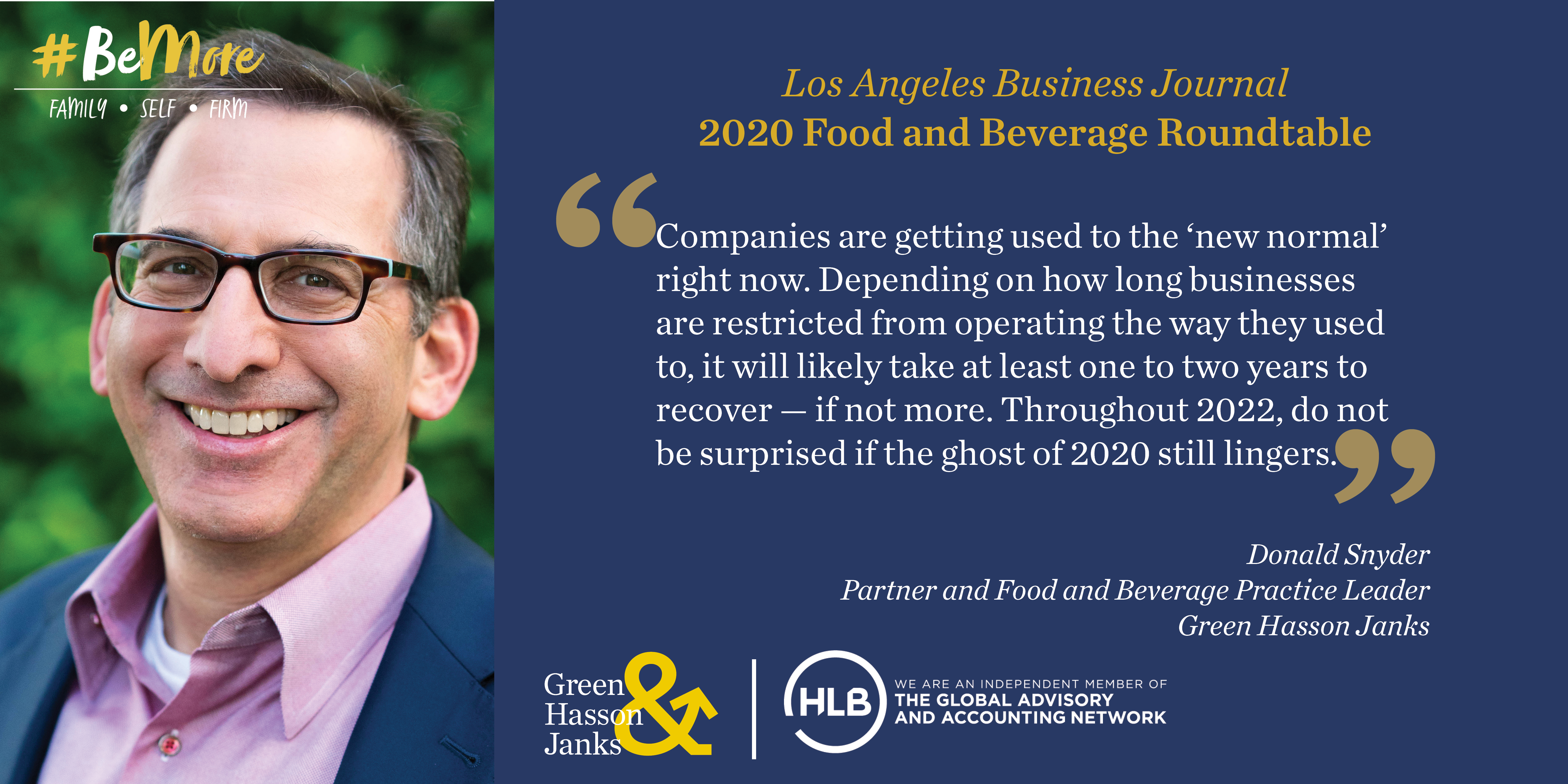 GHJ Food and Beverage Partner Donald Snyder discusses industry outlook and opportunities for companies during the COVID-19 pandemic in the Los Angeles Business Journal’s 2020 Food and Beverage Roundtable. Learn more about changes to food safety, the push for innovation and how companies are preparing for an uncertain future.