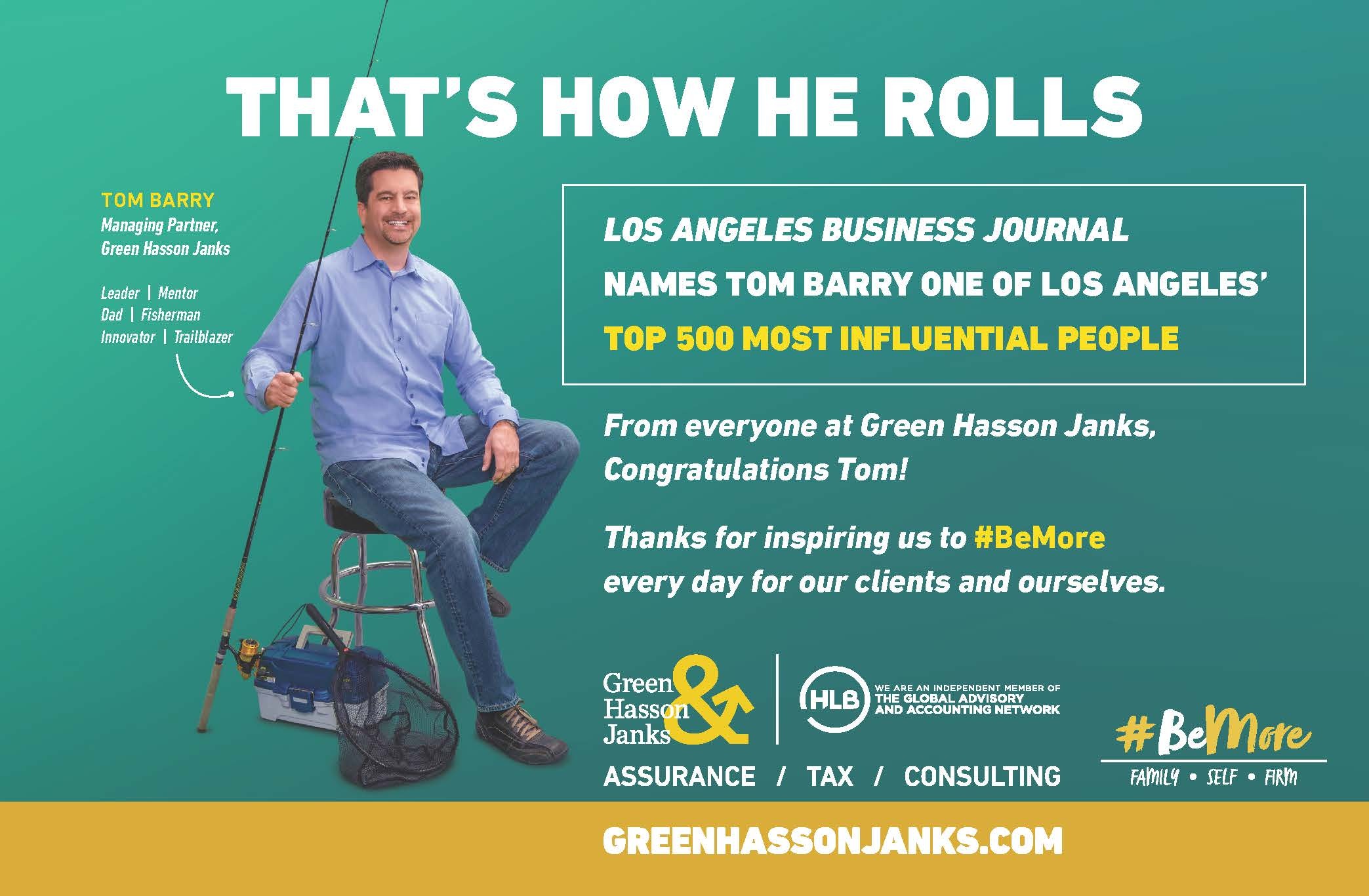 “It is a personal honor to be recognized once again by the Los Angeles Business Journal alongside so many eminent business leaders in the Los Angeles area,” Barry said. “I am proud to lead an immensely talented firm focused on helping our clients and employees #BeMore.”