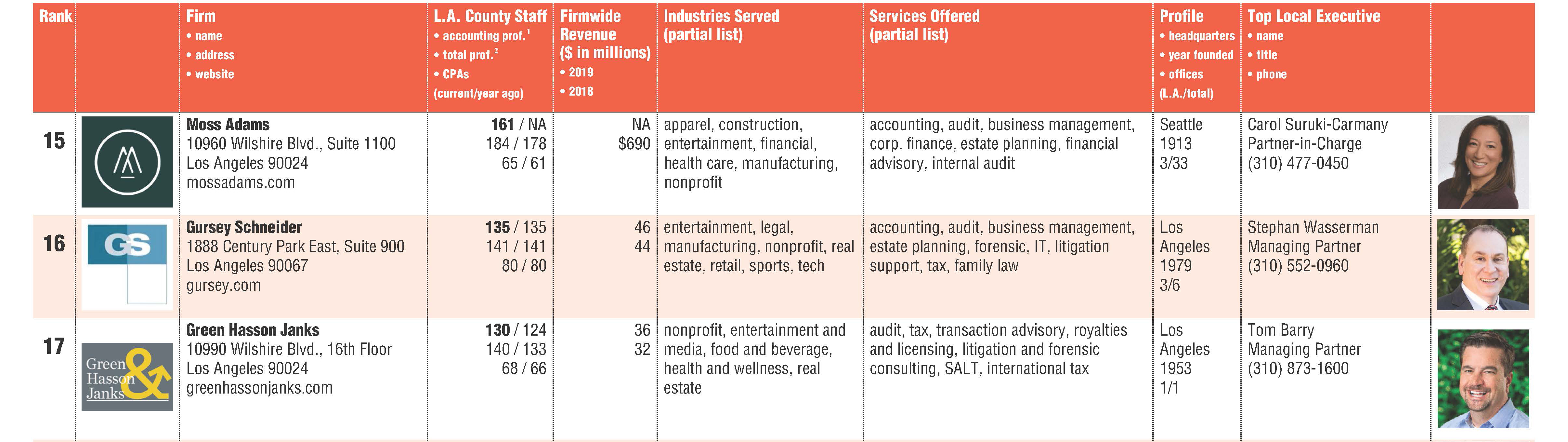 LOS ANGELES, CA – February 26, 2020… GHJ (GHJ) moves up from #18 to #17 on Los Angeles Business Journal’s (LABJ’s) list of top accounting firms. LABJ’s comprehensive list compiles LA’s largest accounting firms that are setting industry standards.